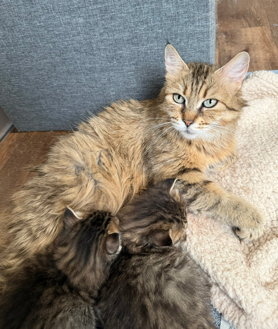 Meet Matcha, one of our beautiful Pixiebob queens here at Pixie Belle. She’s brave, endlessly curious, and always the first to explore something new. Matcha’s intelligence shines through in everything she does—she quickly figures out puzzles, doors, and how to charm her way into extra cuddles. She adores everyone she meets and has the sweetest, most loving personality. As a mom, she’s incredible—patient, attentive, and nurturing, always keeping a watchful eye on her kittens and teaching them with gentle care.